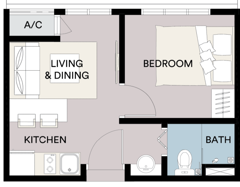 592 sqft | 55 sqm (1 Room, 1 Bath)