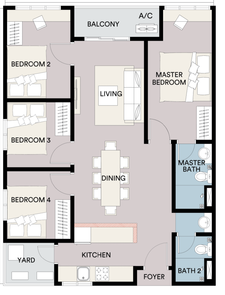 - 1 to 4 bedrooms